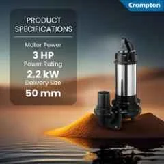 Crompton 3HP Three Phase Sewage Submersible Pump, STPM32